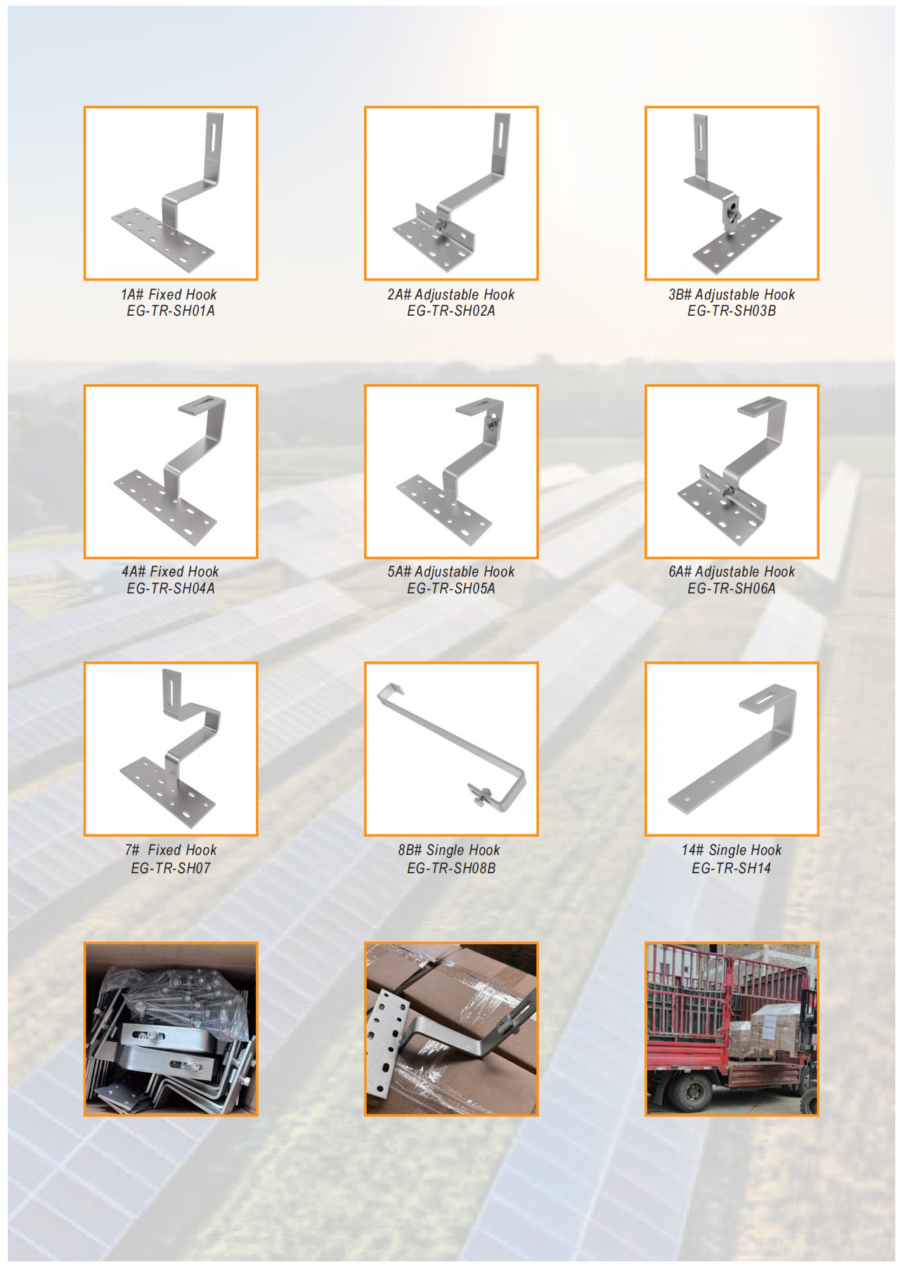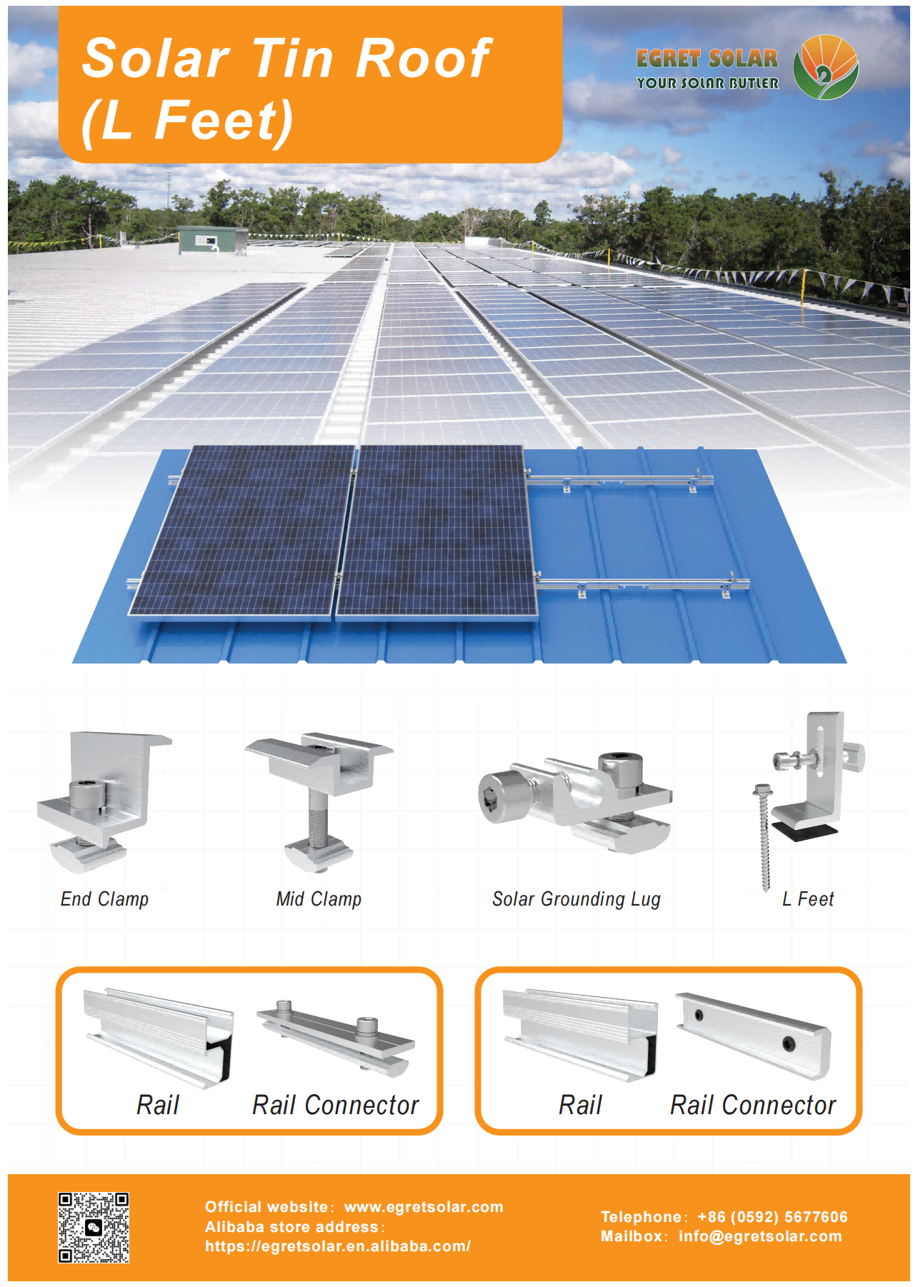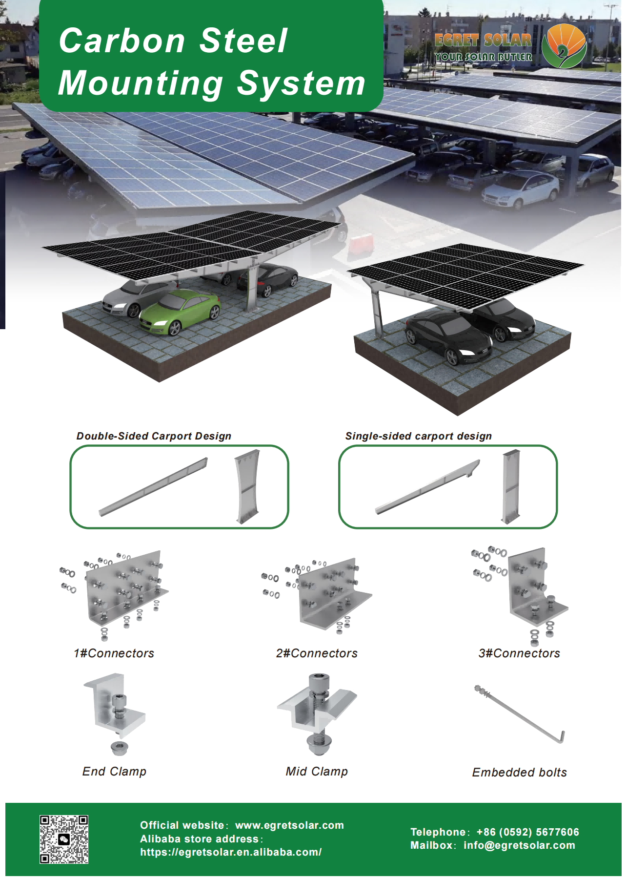 Egret Solar brachte viele Proben in die Ausstellung. Die geförderten Hauptprodukte unterscheiden sich in verschiedenen Umgebungen. Es gibt kurze Schienenhalterungssysteme, L -Fuß -Halterungssysteme und einstellbare Vorder- und Hinterfußsysteme, die auf Metalldächern verwendet werden können. Montagesystem für Kohlenstoffstahl und Aluminium -Carport -Befestigungssystem für Solar -Carports; Erdungsmontagesystem mit Einzelsäulen- und Erdungsmontagesystem mit Doppelsäulen für die Grundnutzung; Die Montageklasse mit Fliesendach wird im Allgemeinen für Fliesendächer verwendet, und der Haken und die Schiene können gemäß der tatsächlichen Situation ausgewählt werden. Ballastdach -Montagesystem und Stativsystem werden am häufigsten für Flachdächer verwendet. Sagen Sie uns das Installationsszenario, die Windgeschwindigkeit, die Schneelast, das Budget usw. und wir werden das Design für Sie anpassen. Sie können uns von ganzem Herzen vertrauen.